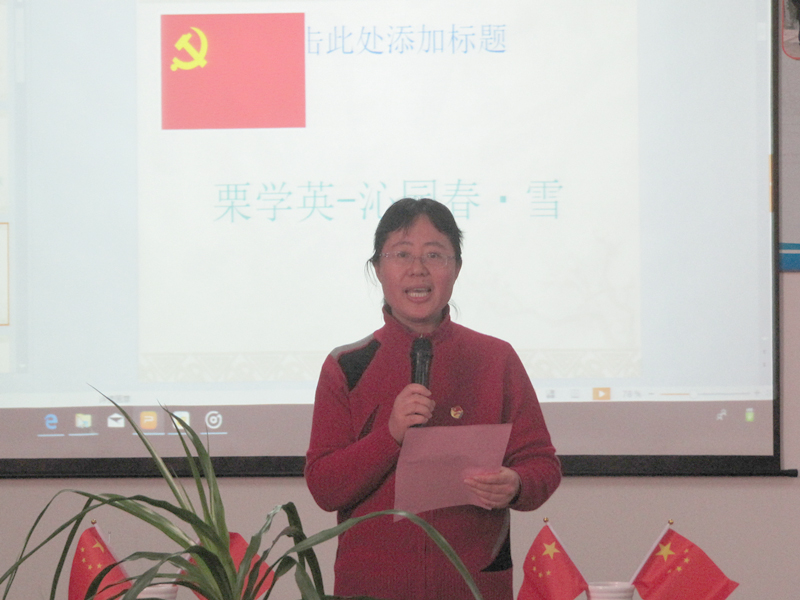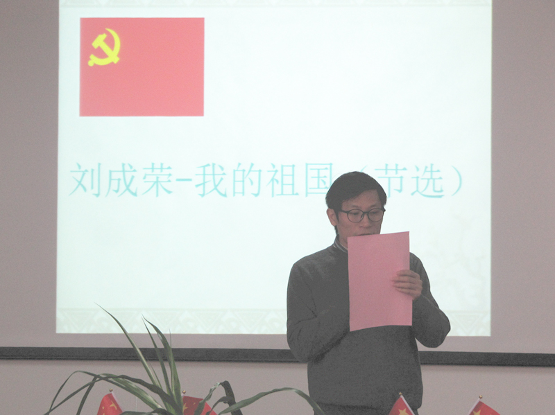 公司党总支书记、经理刘顺在致辞中指出,兴中华,承前启后;扬国威,万众一心!昭昭前事,惕惕后人!从悲愤屈辱深重苦难历史中站起来的中国人,将振兴中华的坚定信念化作披荆斩棘的磅礴力量,党领导中国人民取得了新民主主义革命、社会主义建设和改革开放的伟大胜利,迎来了从站起来、富起来到强起来的历史飞跃! 今天的中国,经过四十年的改革开放,在习近平新时代中国特色社会主义思想指引下,中国人民正朝着富强、民主、文明、和谐、美丽的社会主义现代化强国目标阔步前进!前事不忘,后事之师。面对历史,我们倍加珍惜今天的和平安宁;面对历史,我们越发为祖国的强盛欢欣鼓舞;面对历史,我们油然而生为伟大时代建功立业的豪情壮志。公司党总支围绕学习宣传贯彻党的十九大精神、习近平新时代中国特色社会主义思想、习近平总书记全国教育大会重要讲话精神和校四次党代会精神,开展这次诗词诵读大会活动,旨在传承中华优秀文化,弘扬爱国主义精神,讴歌改革开放四十年的巨大成就。