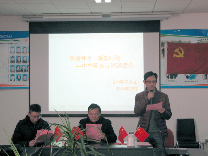 2018年12月12日,时值第五个国家公祭日前夕,公司党总支在文心301会议室举办“珍爱和平,颂歌时代——中华优秀经典诗词诵读会”,以缅怀历史,勿忘国耻,珍爱和平,圆梦中华。诵读大会由公司党总支副书记洪涛主持。