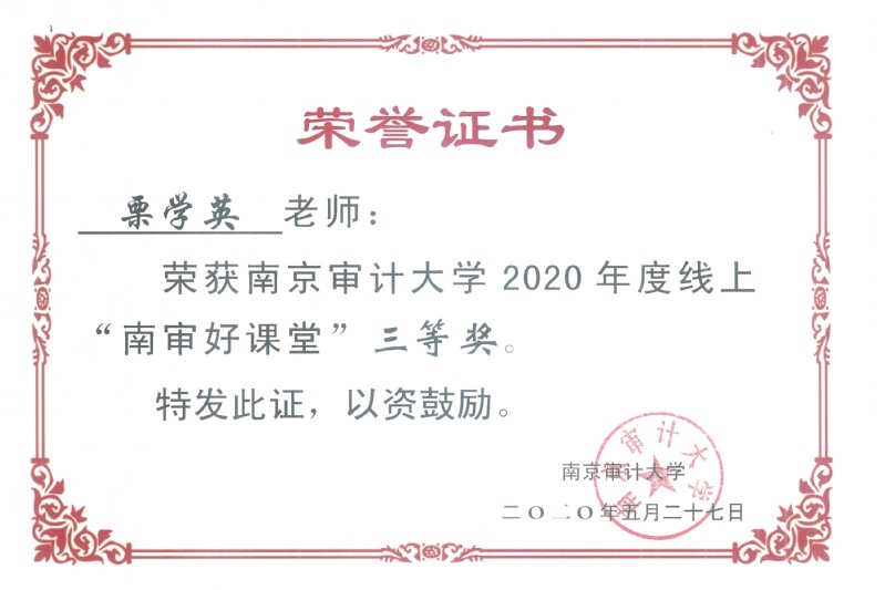 【获奖】公司栗学英、刘成荣老师喜获校2020年度线上“南审好课堂”三等奖
