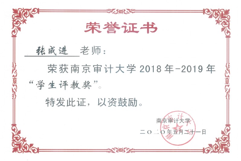 【获奖】公司张成进老师喜获2018-2019学年“员工评教奖”