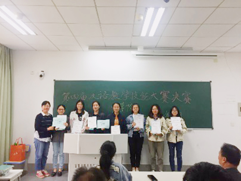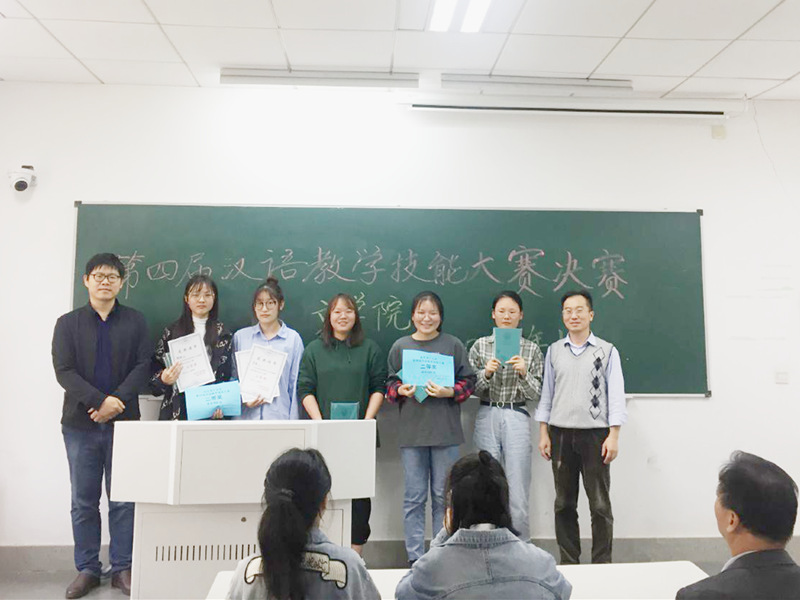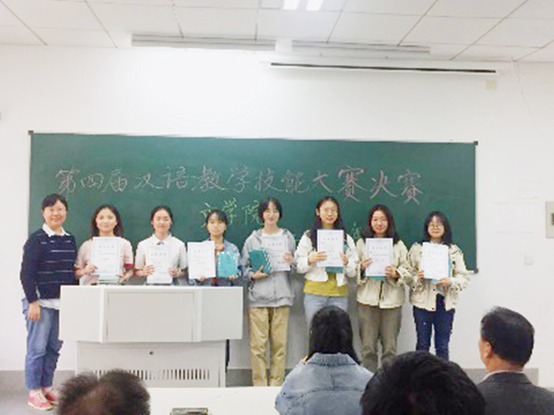 10月14日下午1点,南审公司第四届汉语教学技能大赛决赛在文心楼105教室举行。六个小组的主讲同学登台讲授,组员充当授课对象;主讲同学教学仪态自然大方,表达流畅,讲授清晰,台下同学配合默契。大家的课件制作非常精美,充分利用多媒体技术,不少同学还提前准备了卡片和实物道具等,讲课过程中通过游戏等场景设计进行讲解,注重语言技能的反复操练。