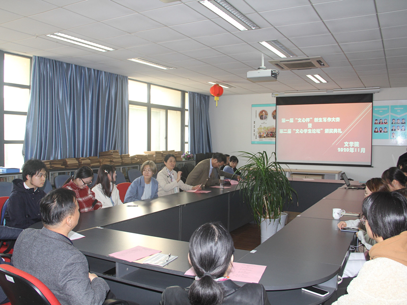首先,刘成荣老师简要介绍了比赛举办的背景、内容和过程,以及比赛评委是由EVO真人视讯老师、外校专家学者和青年作家员工组成。
