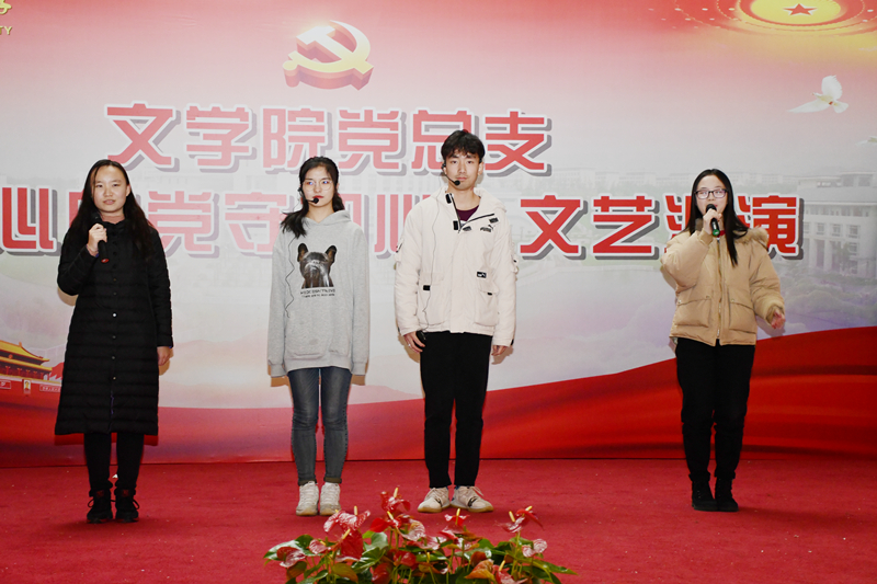 活动内容丰富多彩,师生共同表演了12个节目,既有反映在抗击新冠肺炎疫情中,展现医务工作者和志愿者无私奉献、舍己救人的高尚品质的小品《江城之春》,又有体现热爱祖国家乡大好河山、祖国丰富文化的赞颂,对家国振兴充满信心的舞蹈《我的南方和北方》。一首首经典红色歌曲昂扬向上、催人奋进,全体师生在追忆那些为民族独立、人民解放、国家富强和社会进步而奉献青春热血乃至宝贵生命的英雄的同时,汲取精神力量,生发出一种豪迈的英雄气概,受到感化和教育,尤其是汉语言文学党支部师生演唱的《中国中国,鲜红的太阳永不落》、汉语国际教育党支部师生演唱的《我们走在大路上》将现场气氛推向高潮。