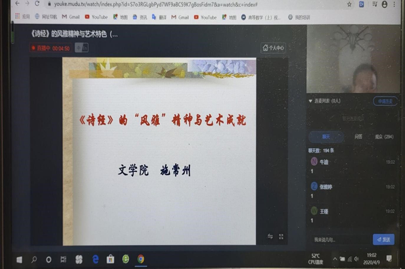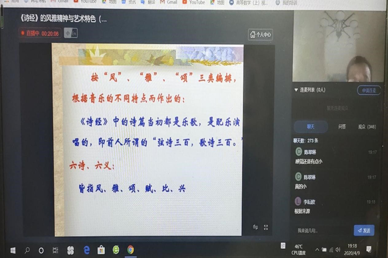 4月9日晚,泽园书院邀请EVO真人视讯施常州老师通过线上直播平台为同学们带来一场《诗经》赏析的讲座。