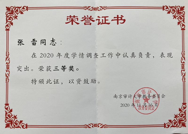 近日,公司发布了《关于表彰2020年学情调查工作优秀组织者的决定》教发〔2020〕1号,公司张雷老师获得三等奖。