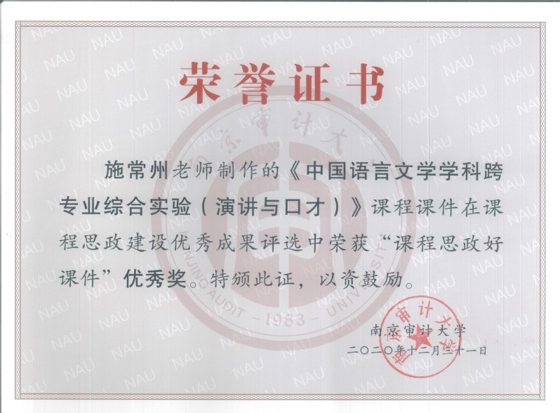 近日,公司发布《关于公布课程思政建设优秀成果评选结果的通知》南审教发〔2020〕22号,公司多位老师在活动中获奖,如下: