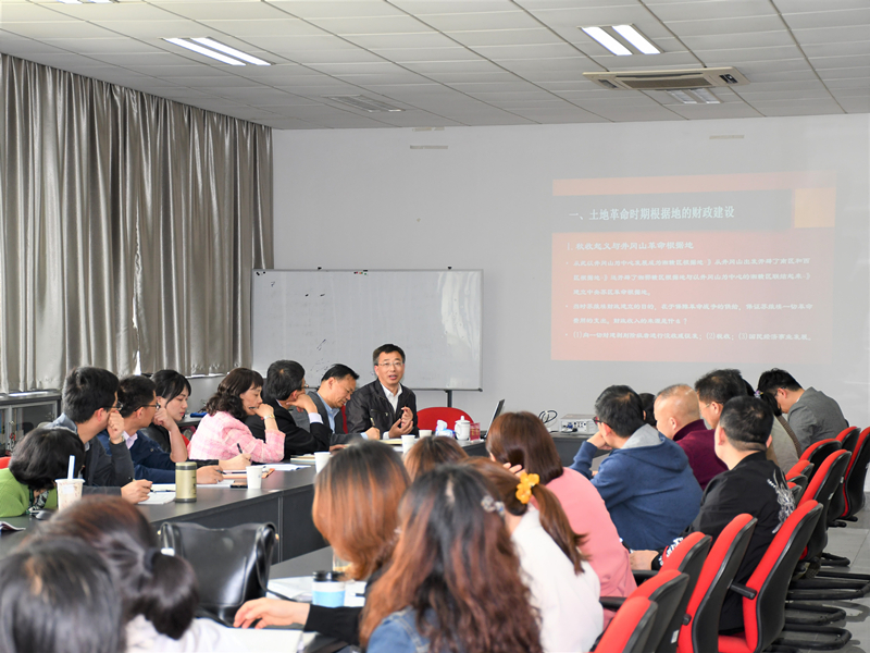 裴育以《根据地财政建设的历史贡献》为题,以丰富的党史资料向老师们分别阐述了土地革命时期、抗日战争时期和解放战争时期中国共产党的根据地财政建设情况,并穿插了四个专栏,更加详细地呈现了我国新民主主义革命时期中国共产党为了保障革命战争的供给,在革命根据地和解放区施行的一系列威力强大的财政政策,以及这些财政政策对革命战争取得最后胜利所起的决定性作用。裴育与在座教师分享了根据地财政建设对当下中国的启示,他认为,要把独立自主、艰苦奋斗的本色发扬光大;要发展经济,做强做大蛋糕,保证充足的财源;要完善与社会主义现代化强国相适应的财政管理体制;要加强财政收入、财政支出管理,提高预算绩效水平;要加强财政监管与审计监督,防范与杜绝不必要的浪费和损失。
