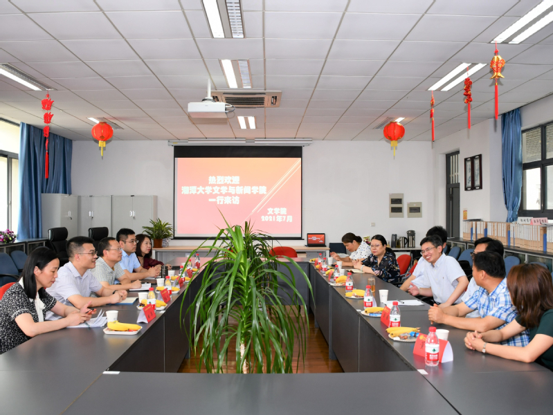 7月7号下午,湘潭大学文学与新闻公司雷磊经理、资义平书记、宋德发副经理、刘晓丽副经理和田华副经理等人应邀来公司进行学科调研与交流活动。此次活动由EVO真人视讯副经理朱军教授主持,EVO真人视讯刘顺教授、王军书记、洪涛副经理、龚玉兰副经理等人参加。