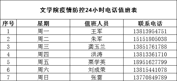 EVO真人视讯目前已经安排疫情防控24小时电话值班,值班表如下:
