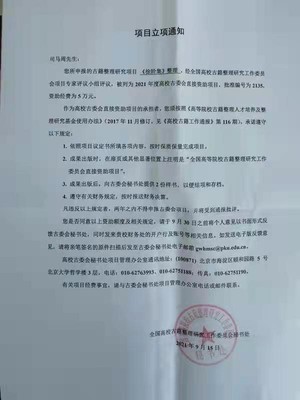 二、公司近期获得全国高校古籍整理研究项目立项1项:《徐阶级》整理,主持人:司马周教授。