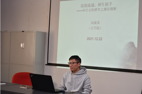 刘成荣作“院校流通,师生联手——审计文化研究之路径探析”主题分享。他阐释了自己对研究审计文化的基本前提、总体设计、实施路径、具体方法及成果呈现等内容的思考。他表示,要了解什么是审计文化,审计文化的构成及公司师生条件这几个方面,明确研究审计文化的前提;可以从文化方向、文学方向和人物方向三个层面探索研究实施路径;通过写作大赛、视频大赛、实践活动等具体举措推动师生审计文化研究。