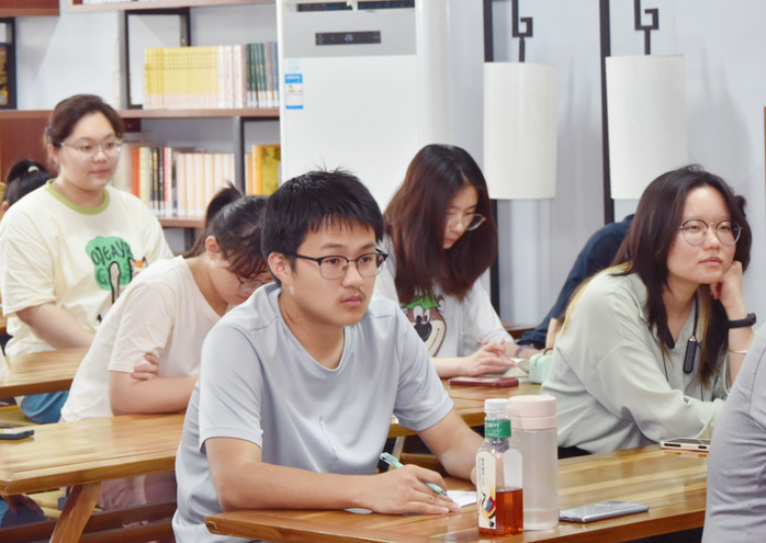 公司党总支书记王军、副经理洪涛,澄园书公司党委书记张武宁、辅导员刘俏芝等与四十多位同学共同参加活动。王军主持活动。张武宁致辞,对两位青年作家到来表示欢迎,希望同学们在交流中有所收获。