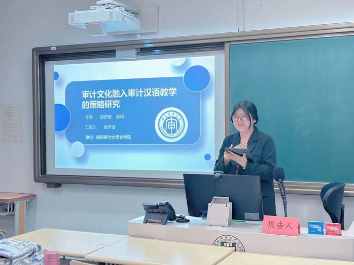 11月25日,第三届专门用途中文教育学术研讨会在北京语言大学召开,该会议由北京语言大学国际汉语教学研究基地/国际中文教育研究院、世界汉语教学学会专门用途中文教育专业委员会主办,旨在促进国际中文教育与相关专业、职业教育融合发展。谢梦璇同学参加会议并汇报论文《审计文化融入专门用途汉语教学的策略研究》,探讨审计专业职工的文化教学问题。