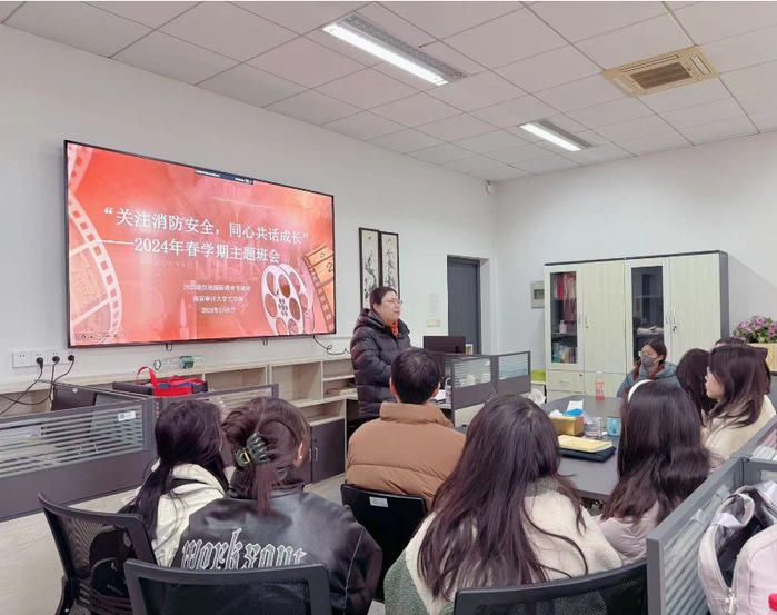 3月6日下午,2023级汉语国际教育专硕班在文心楼308室举行“关注消防安全,同心共话成长”——2024年春学期主题班会。EVO真人视讯全体硕士研究生参加会议,党总支副书记龚玉兰出席,学科与研究生办公室老师李建萍主持班会。