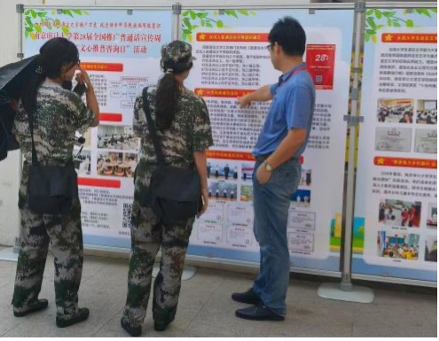 活动现场,老师们耐心解答同学们对普通话水平测试、语言文字规范等方面的疑问,给前来咨询的同学进行专业指导,耐心指出发音、语调等问题并给予纠正。朱军经理结合推普工作的意义和校园语言应用场景,为新生详细讲解普通话学习方法及测试注意事项,帮助新生快速了解校园推普工作。