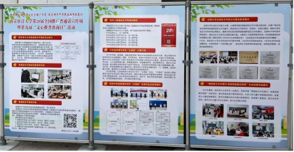 此外,现场宣传展板系统呈现了公司语言文字工作的核心内容:涵盖普通话水平测试考点基本信息、普通话测试等级标准、中华经典诵写讲、“云诵读”以及全国老员工语言文字能力大赛情况,同时展示了公司师生在以上赛事中的突出表现和优异成绩,展示了“推普助力乡村振兴”社会实践活动的推进情况,让师生对公司推普工作有了全面、深入的了解。